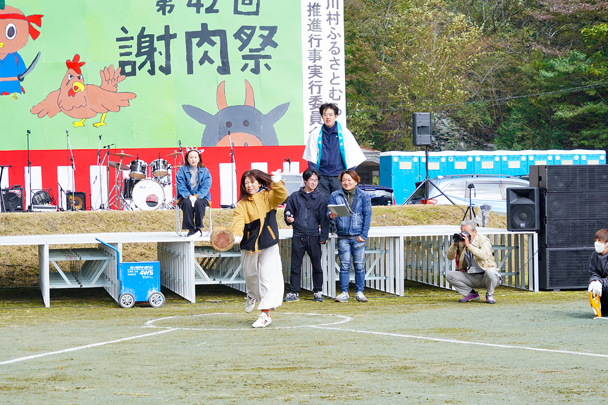 意気込みをマイクで一言言ってから投げるのですが、飛んでも飛ばなくても盛り上がる笑顔あふれる競技です。