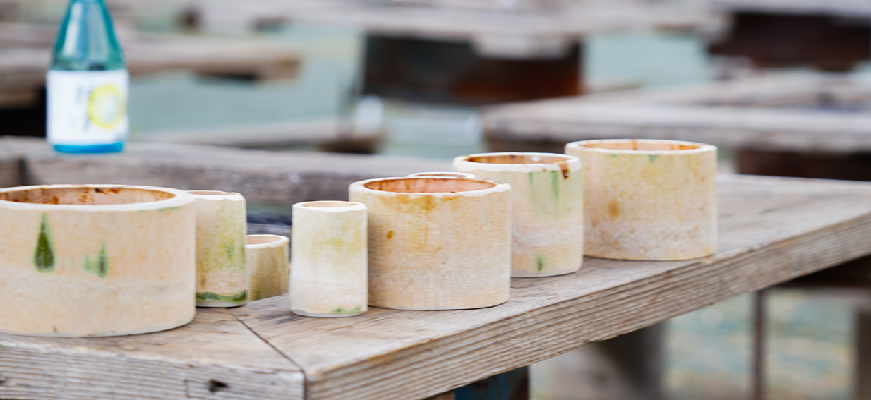 謝肉祭の食器は村の男衆が山から竹を切り出し、1本ずつ削って、やすりをかけて仕上げたものです。