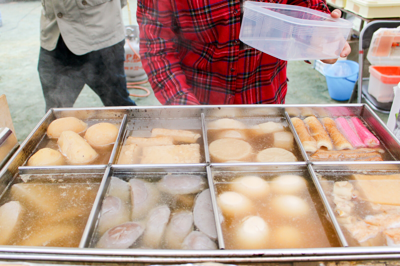 寒い!寒い!!の声が飛び交う中、もつ汁やおでん、うどん、ラーメンなどのあたたかい食べ物が大人気!