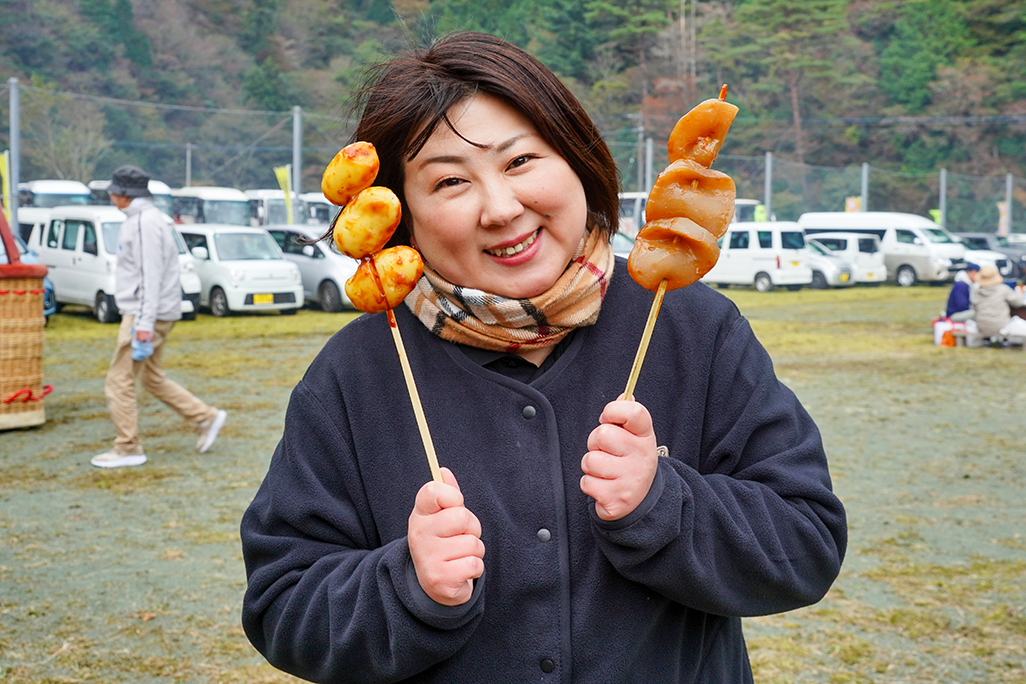はちきん地鶏のむねスティックや田楽、いも天、コーヒーや特産品にもたくさんのお客さんの笑顔がありました!